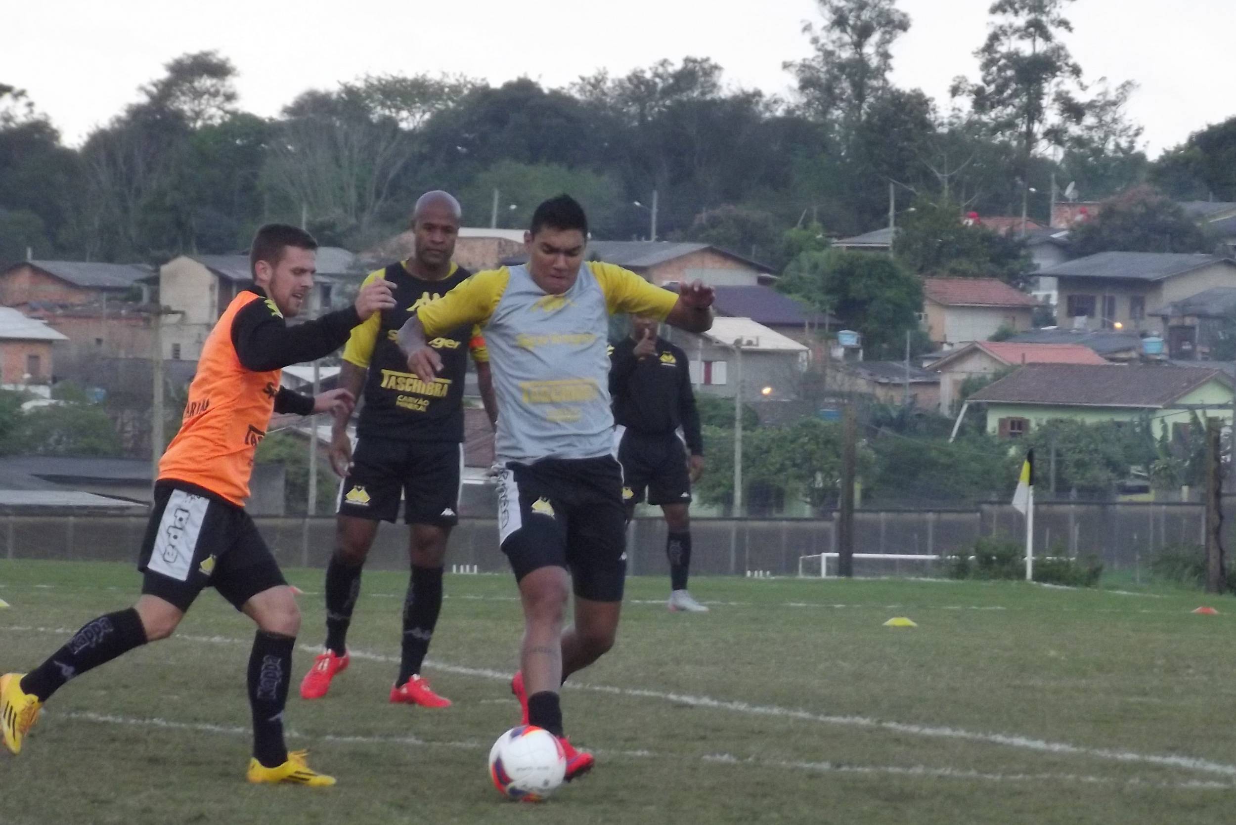 Legenda: Atacante Neto Baiano durante o treino desta quinta-feira (03/09), no Centro de Treinamento, no bairro Cristo Redentor.