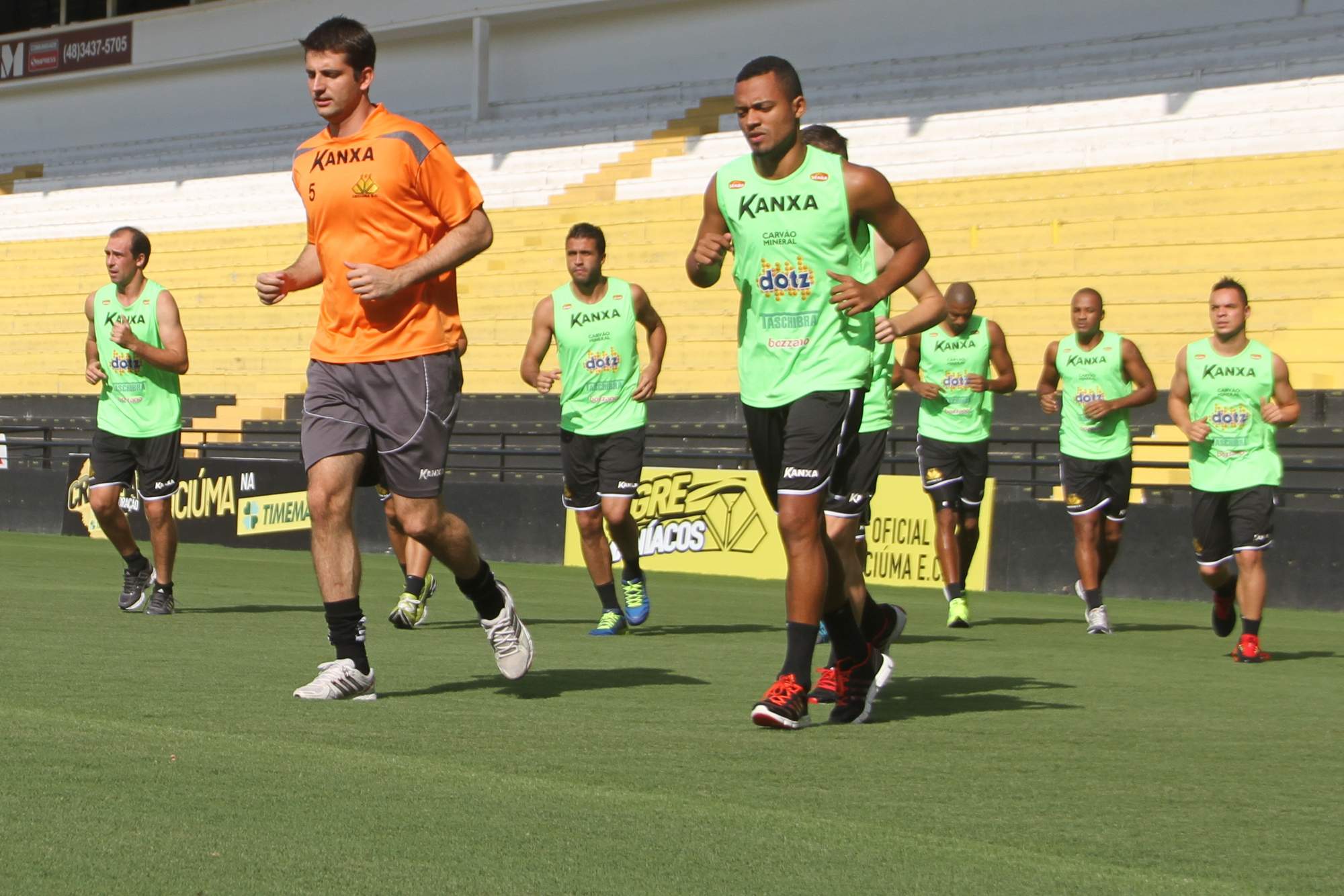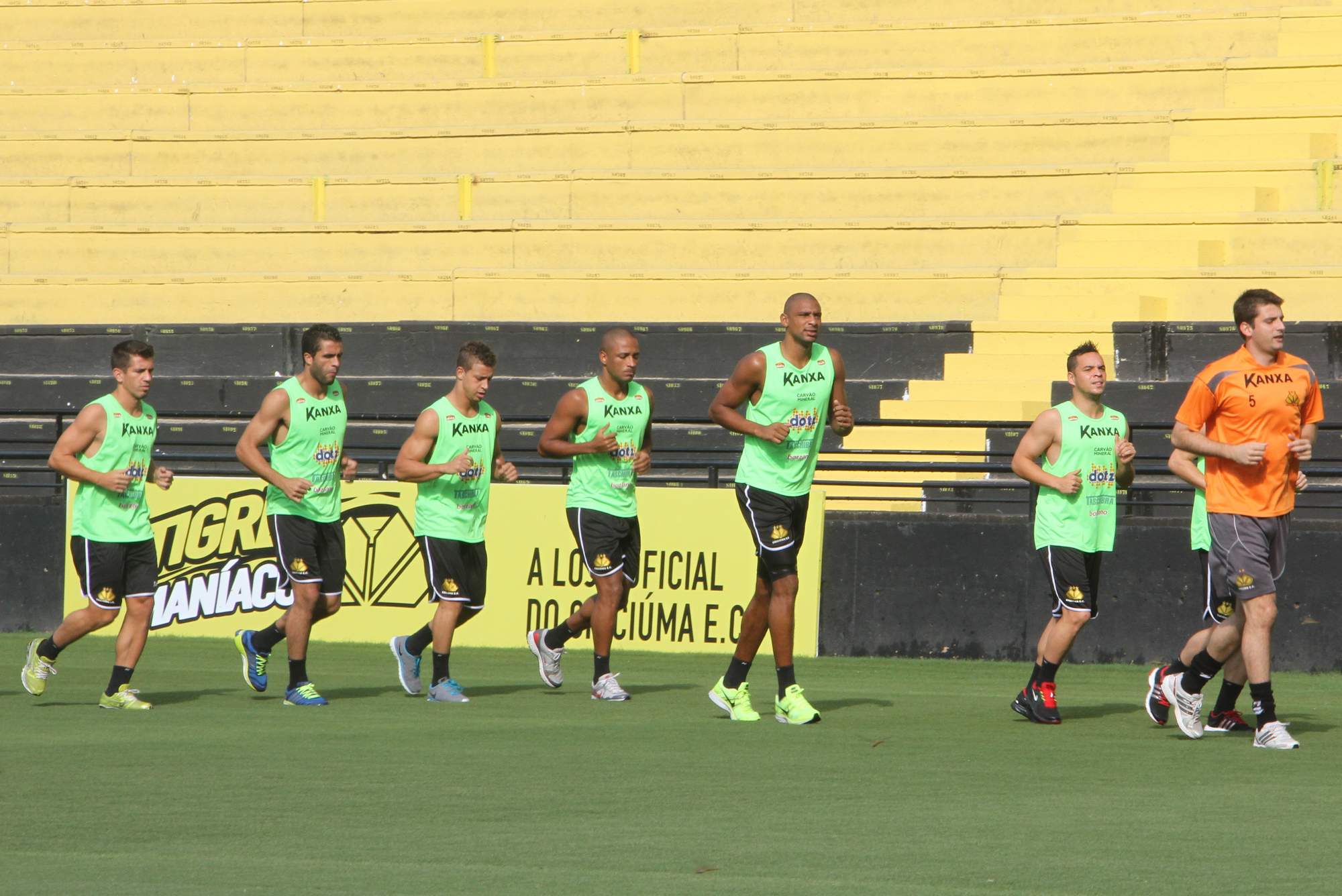 Legenda: Atletas do Tigre durante atividade no estádio Heriberto Hülse na tarde desta quinta-feira (06/03)
