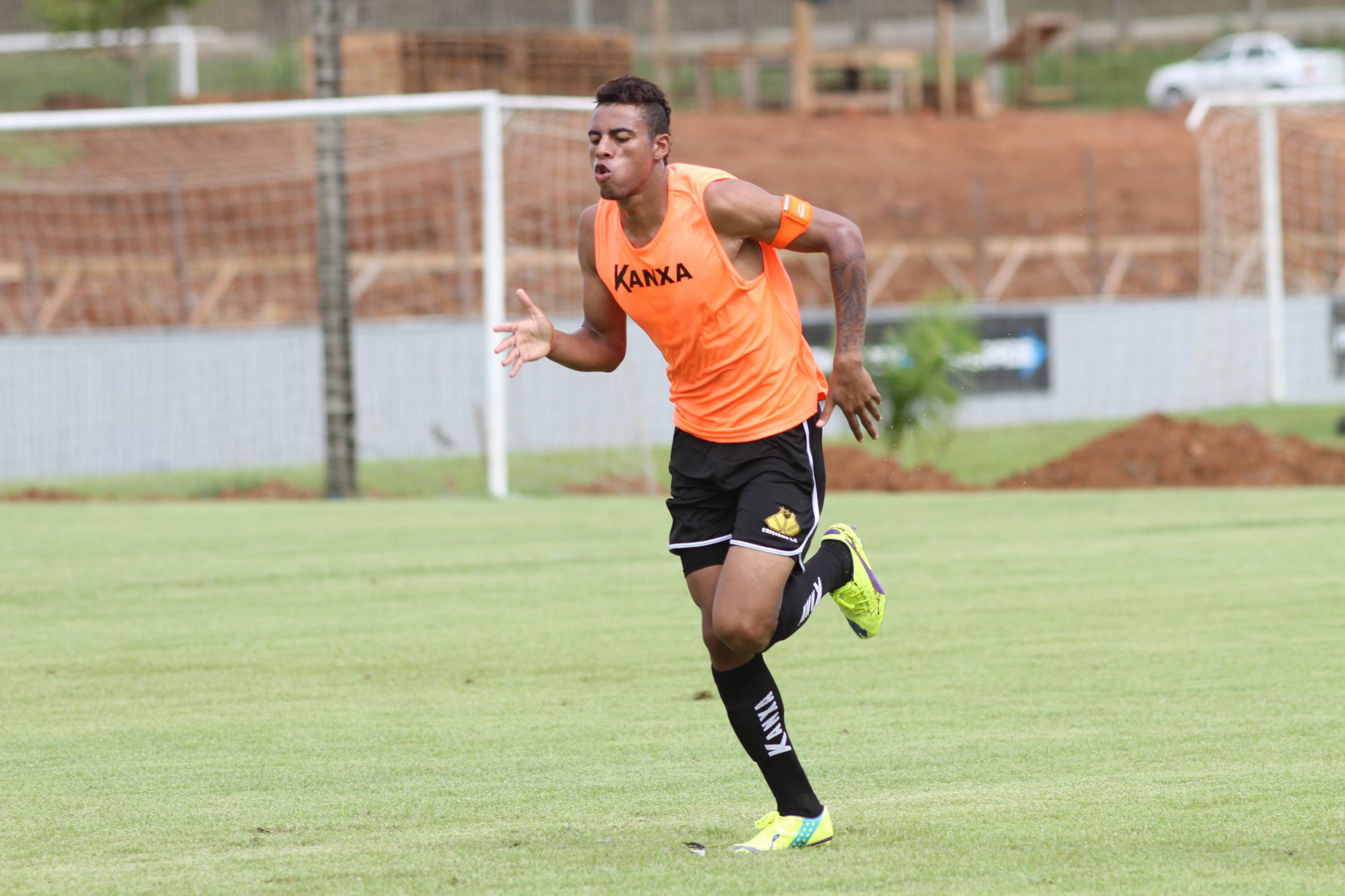 Legenda: Meia atacante Roger durante treino do Criciúma na manhã desta sexta-feira (16/01) no Centro de Treinamento, no bairro Cristo Redentor