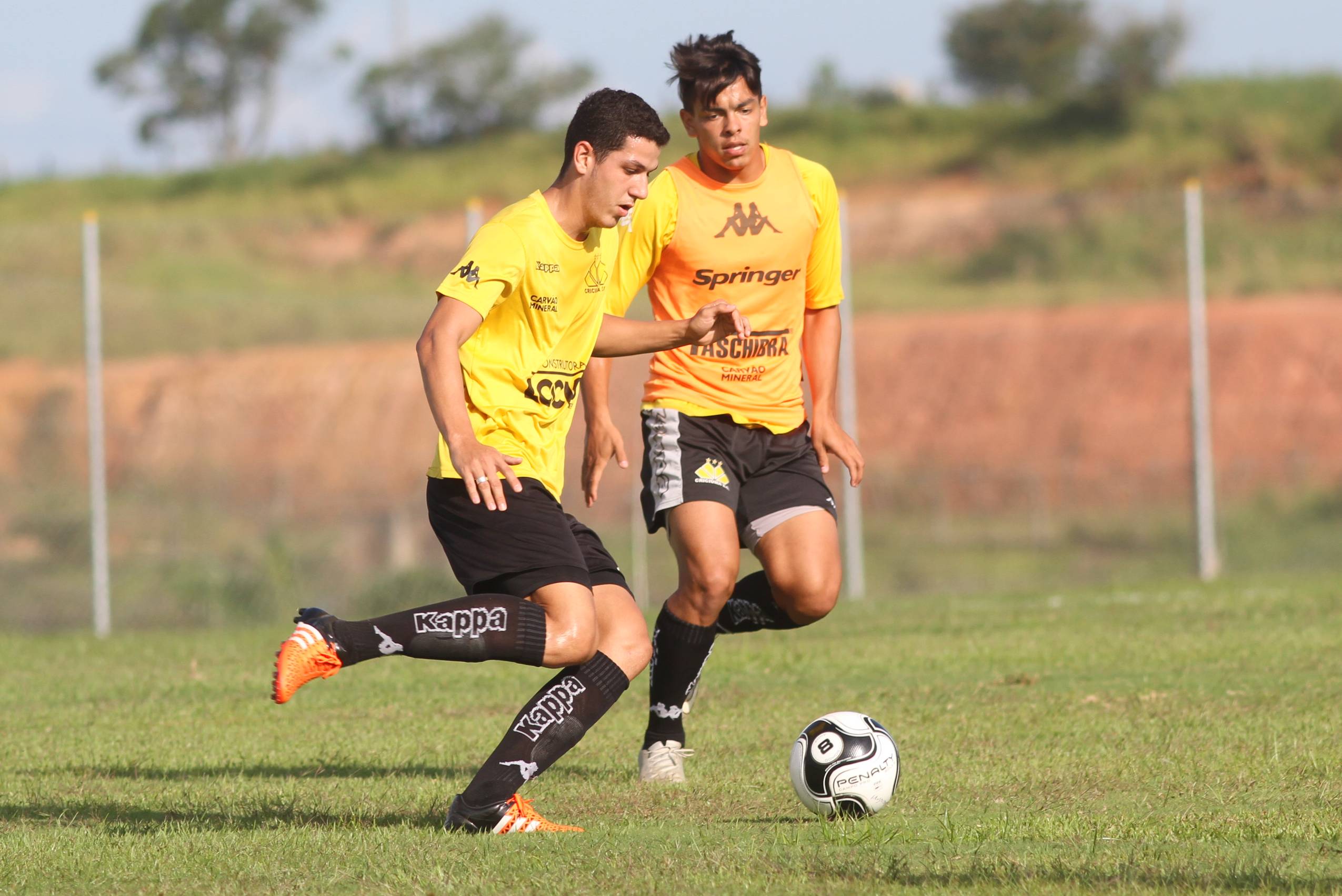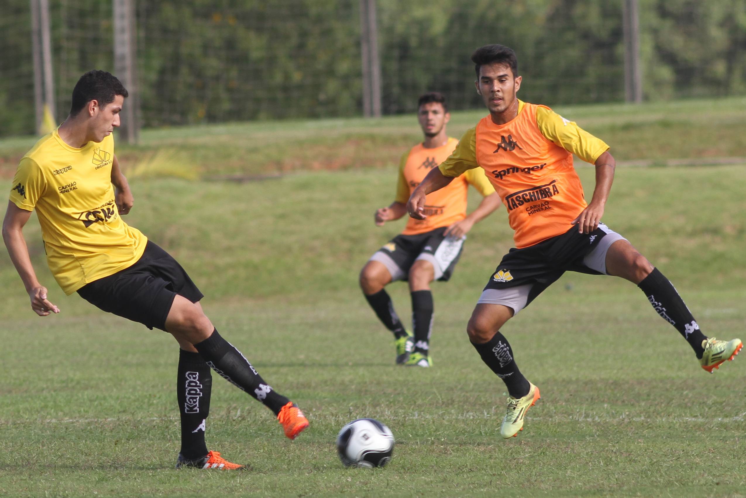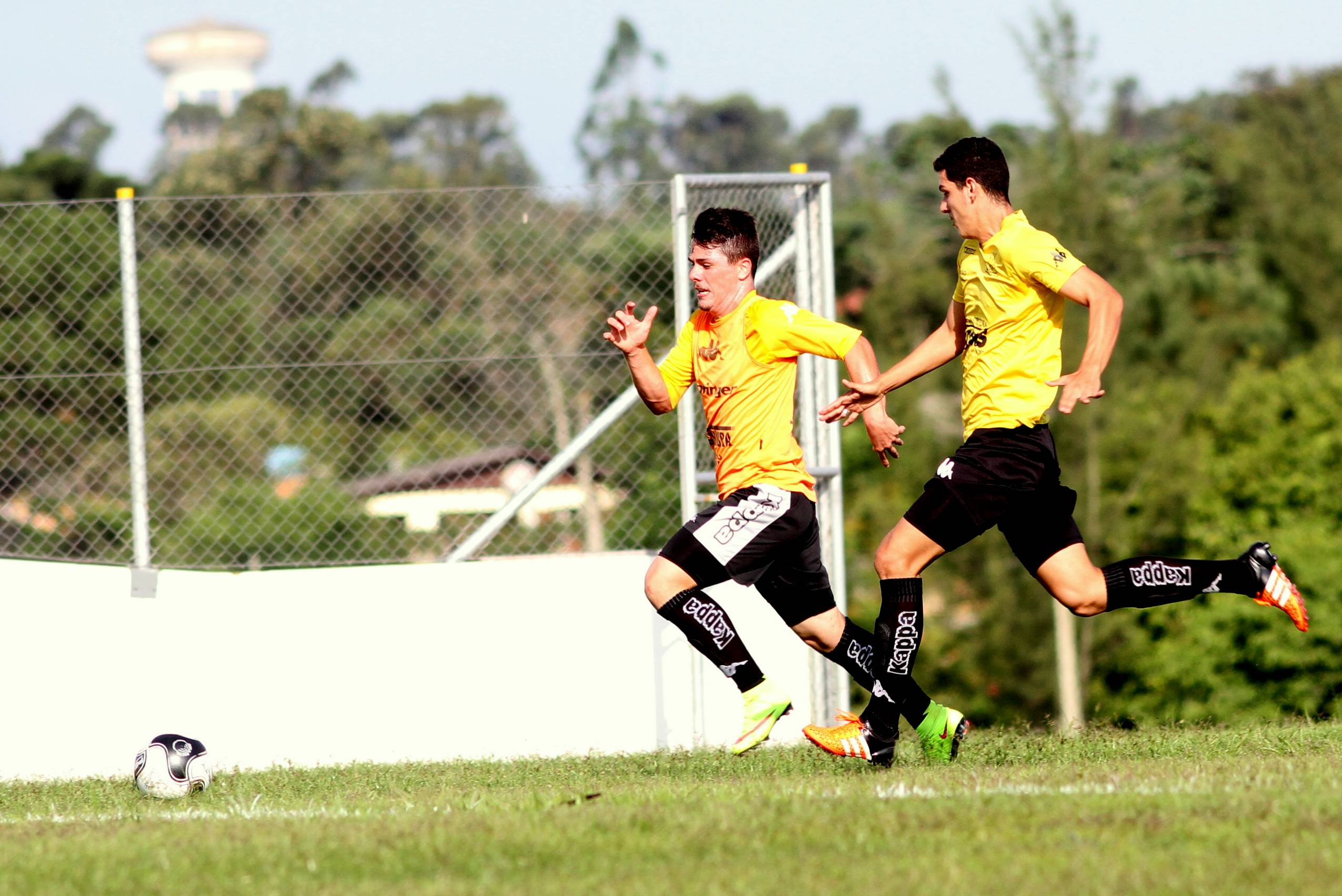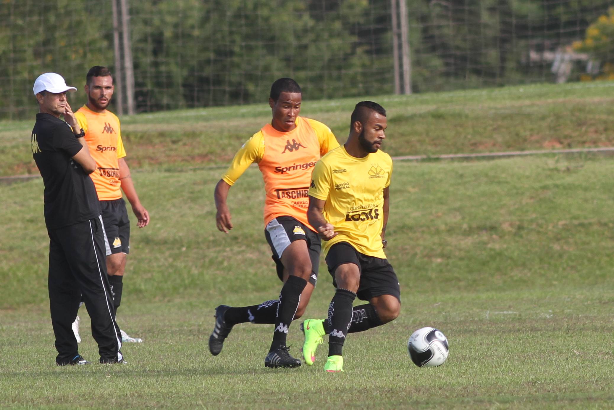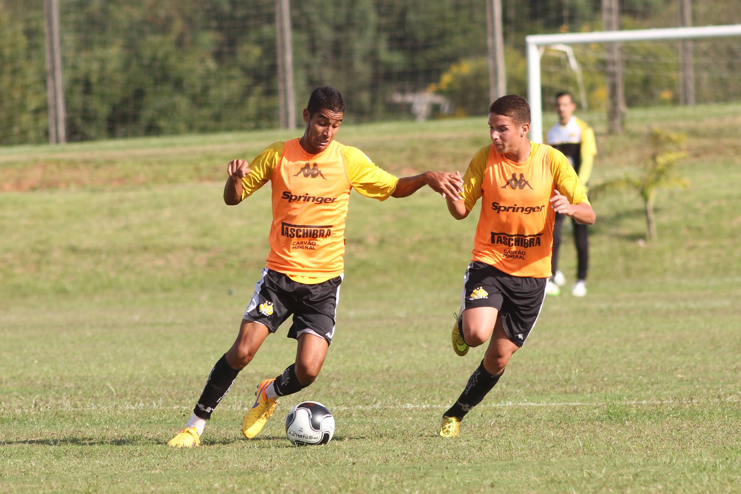 Legenda: Guto e Nino durante treino do Criciúma na tarde desta segunda-feira (07/03), no Centro de Treinamento, no bairro Cristo Redentor