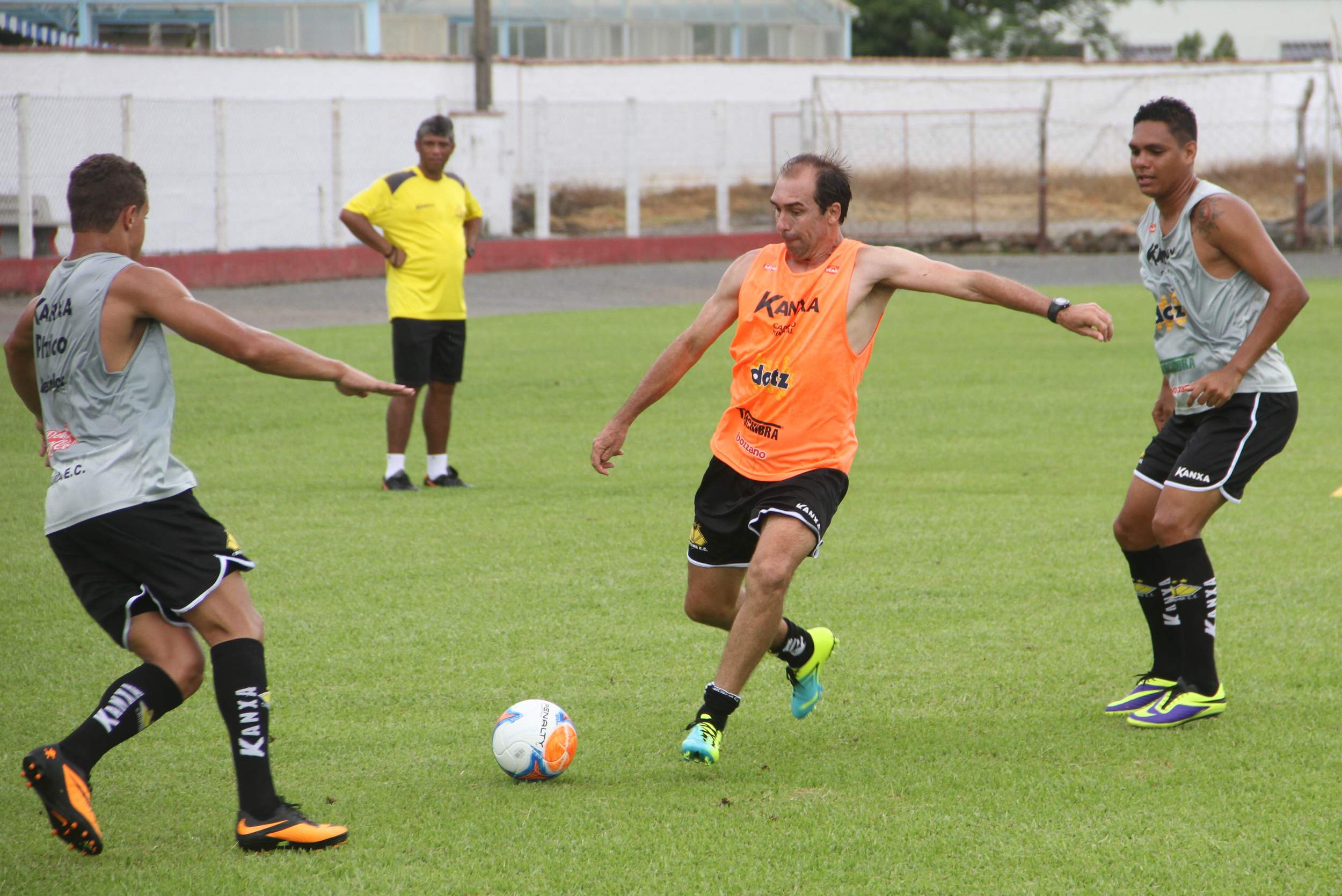 Legenda: Preparador de goleiros Bira durante treino do Criciúma no estádio do América, em Joinville, na manhã deste sábado (25/01)