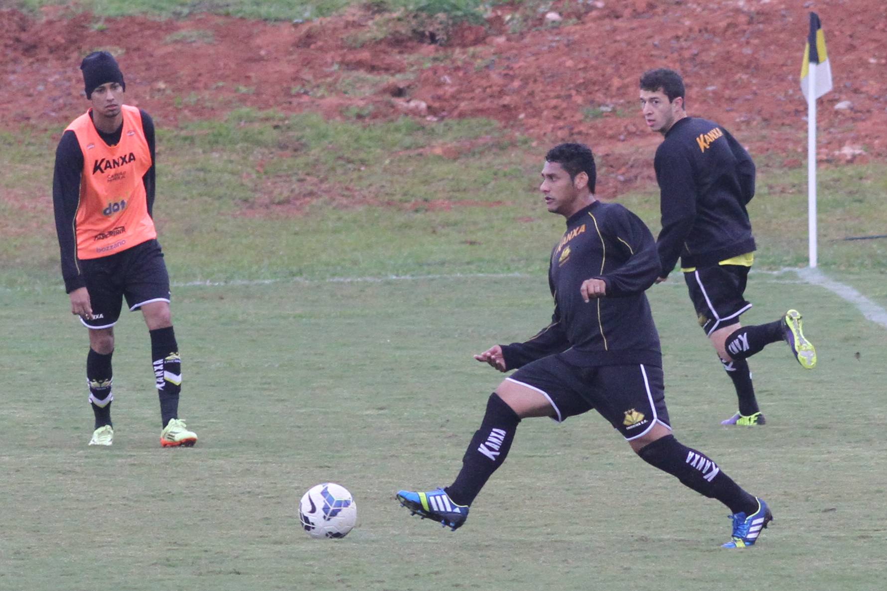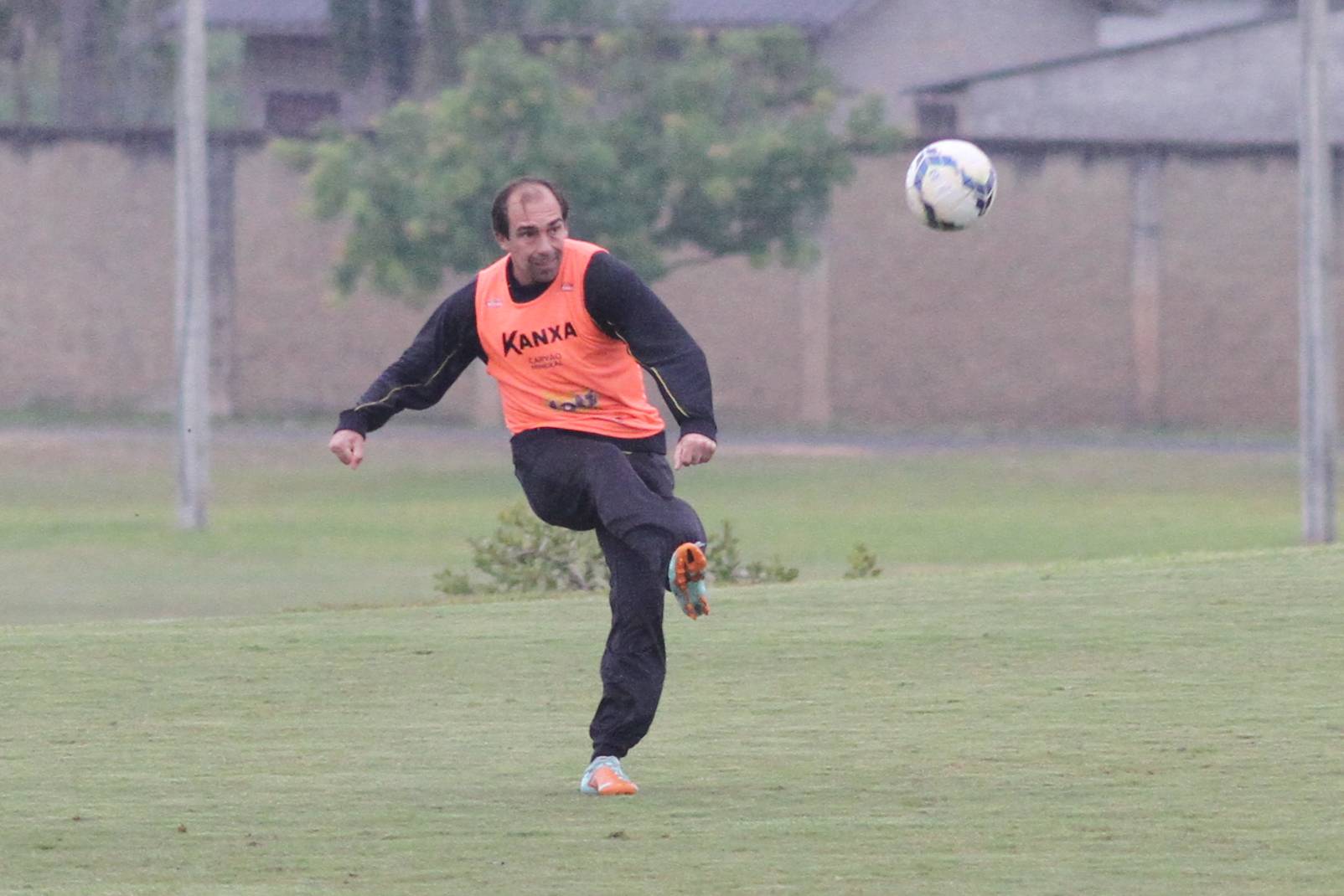 Legenda: Atacante Gustavo durante treino no CT na manhã deste sábado (16/08)