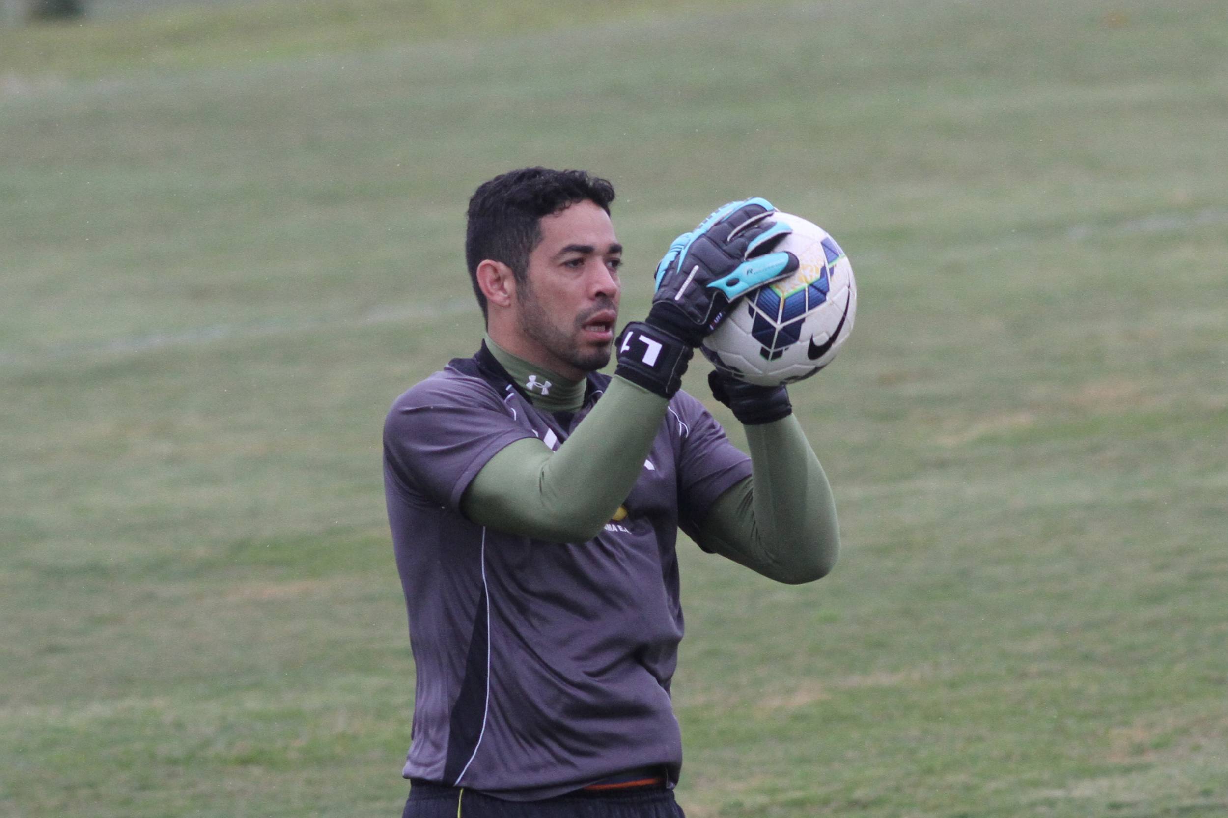 Legenda: Goleiro Luiz durante treino no CT na manhã deste sábado (16/08)