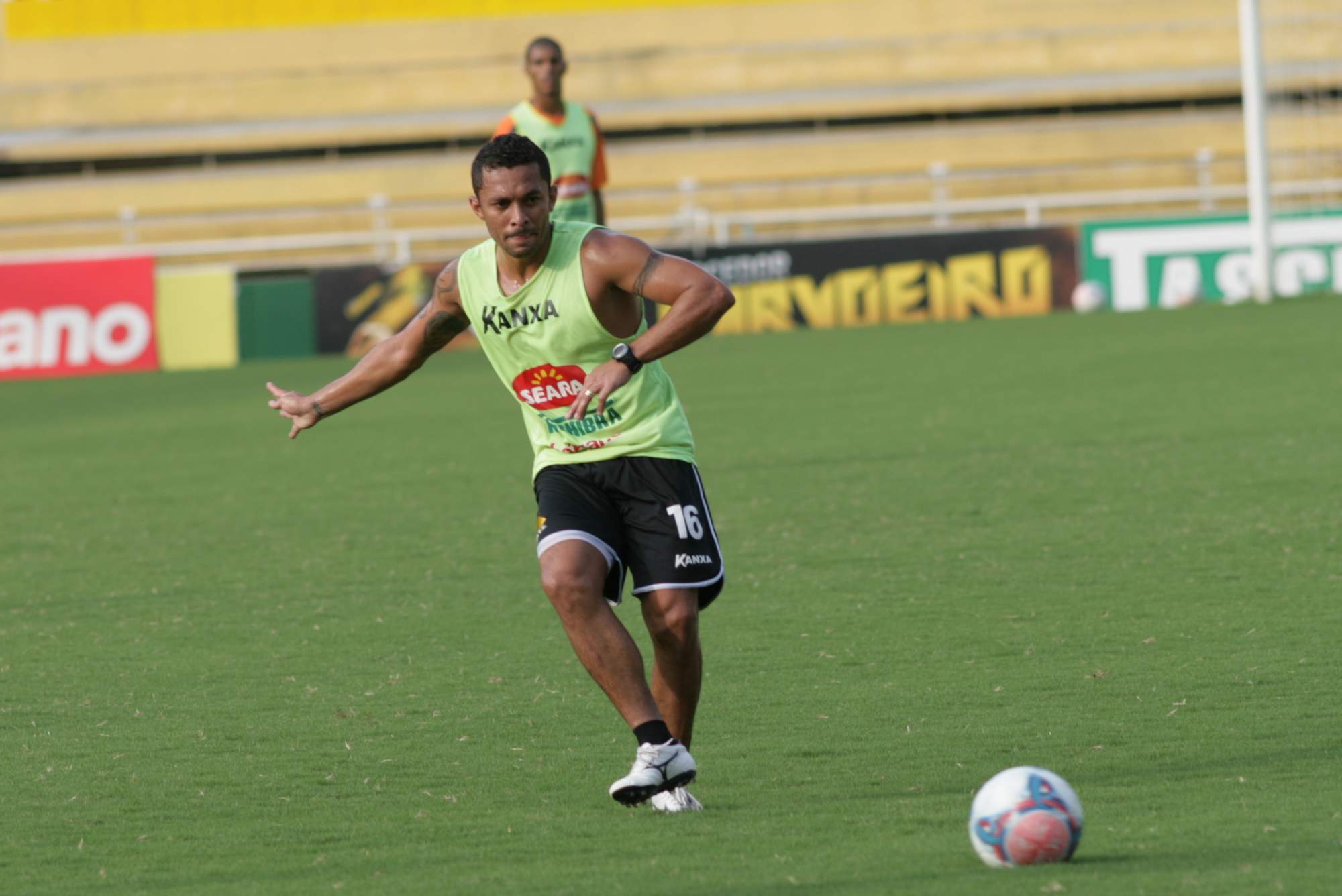 Legenda: Treino no estádio Heriberto na tarde desta quinta-feira (07/03). Na foto, o atacante Giancarlo