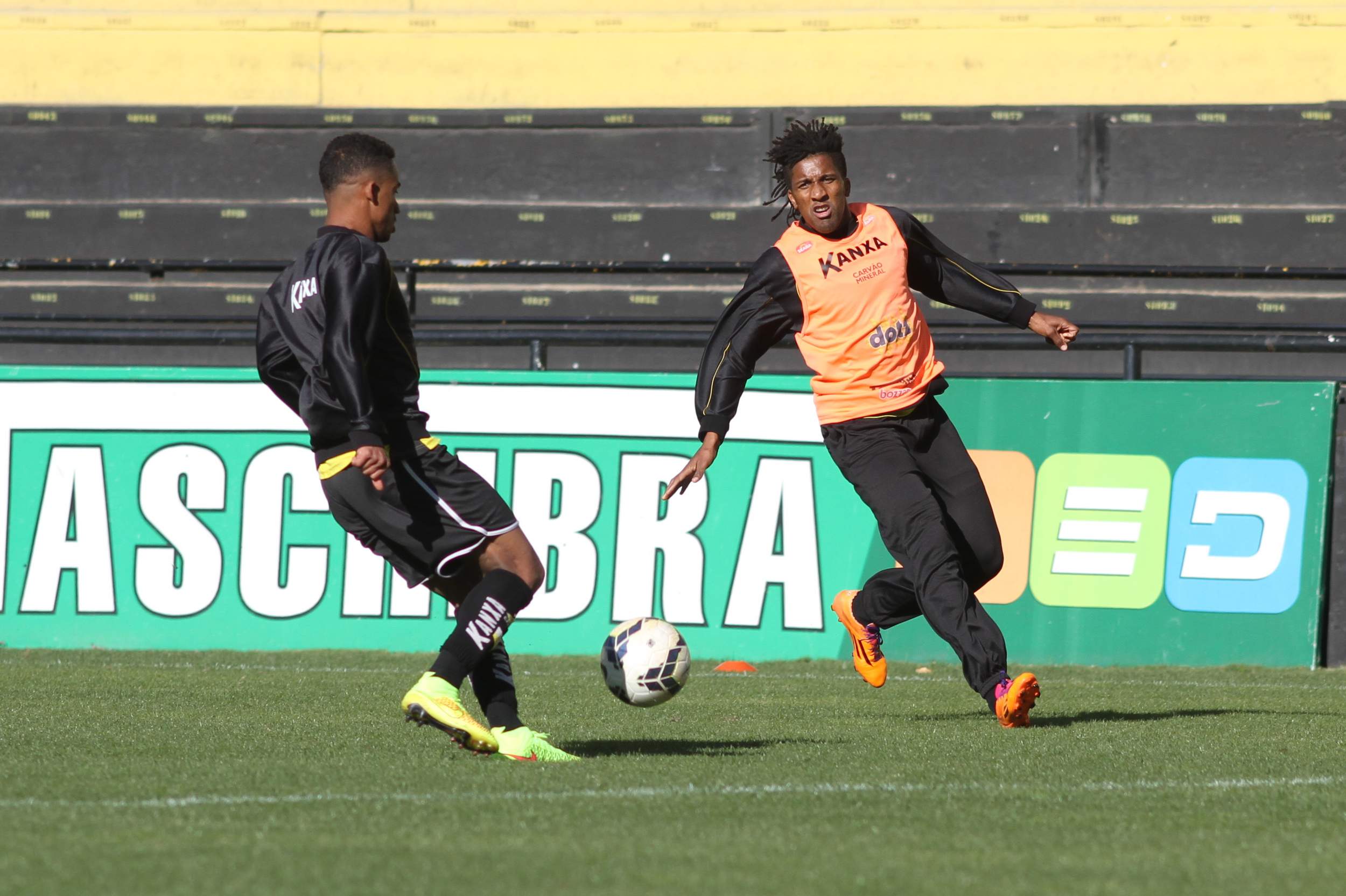 Legenda: Volante Serginho durante treino no estádio Heriberto Hülse na tarde desta quinta-feira (14/08)