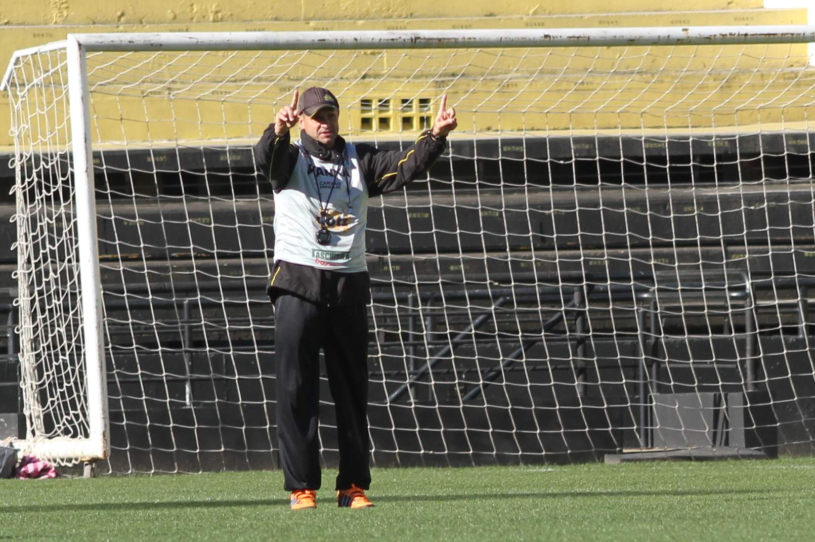 Legenda: Técnico Wagner Lopes durante treino no estádio Heriberto Hülse na tarde desta quinta-feira (14/08)