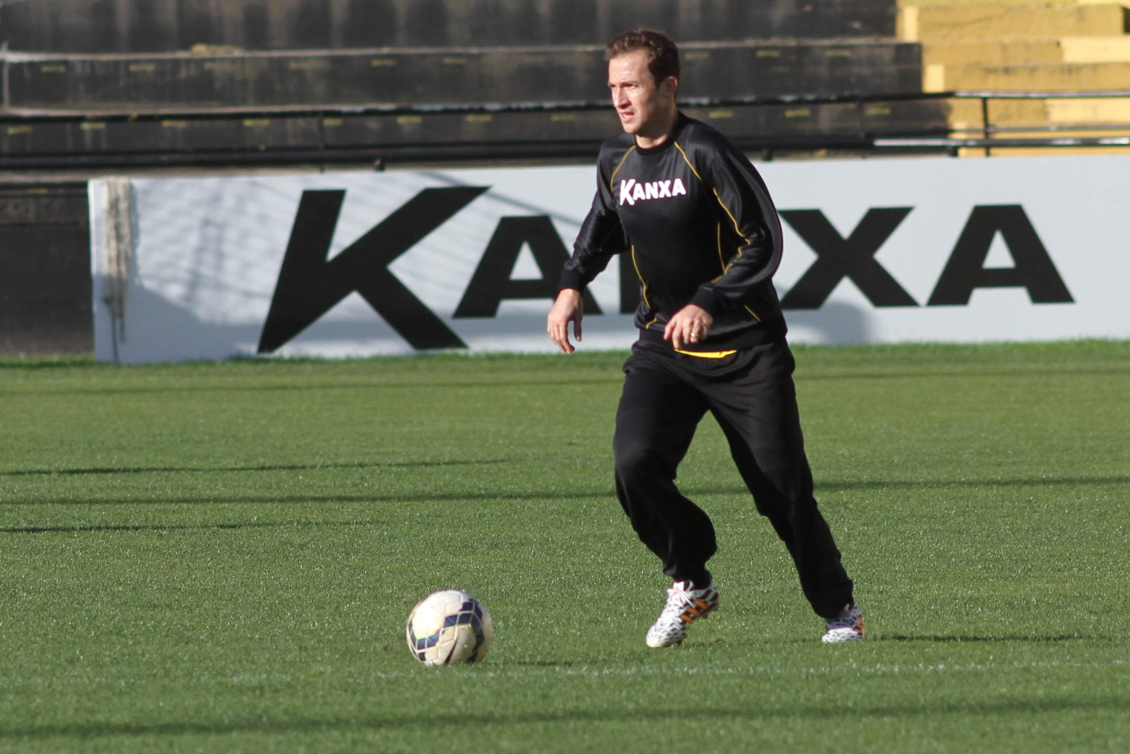 Legenda: Volante Martinez durante treino no estádio Heriberto Hülse na tarde desta quinta-feira (14/08)